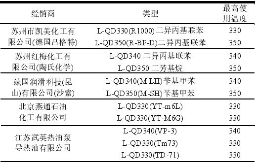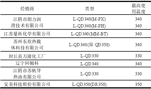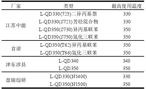 导热油根据其组分可以划分为矿物型导热油和合成型导热油。矿物型导热油大多数为较重的石油馏分,是链烷烃与环烷烃的混合物,其主要优点为具有较高的安全性、产物毒性小、可获得原料广以及成本低廉等,其最大缺点是工作温度较低。合成型导热油是通过化工合成的单一芳香族化合物,具有良好的热稳定性、高传热效率以及较长的使用寿命。最长寿命可达 8~10 年,并且导热油系统的年损耗率小,每年约 3 %。合成型导热油根据其组分不同,大致可以分为:(1)联苯-联苯醚型;(2)氢化三联苯型;(3)苄基甲苯型;(4)烷基萘型。一般来说,矿物型导热油为L-QB 和L-QC 的牌号,合成型导热油牌号以 L-QD为主,少部分为L-QC 牌号。